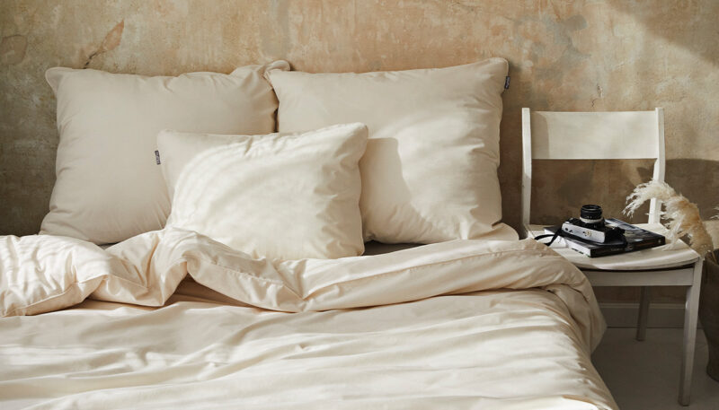 Beigefarbene Bettwäsche – warm und weich, ideal für Einrichtungen im natürlichen Stil. Eine Möglichkeit, eine gemütliche Atmosphäre in Ihrem Schlafzimmer zu schaffen.